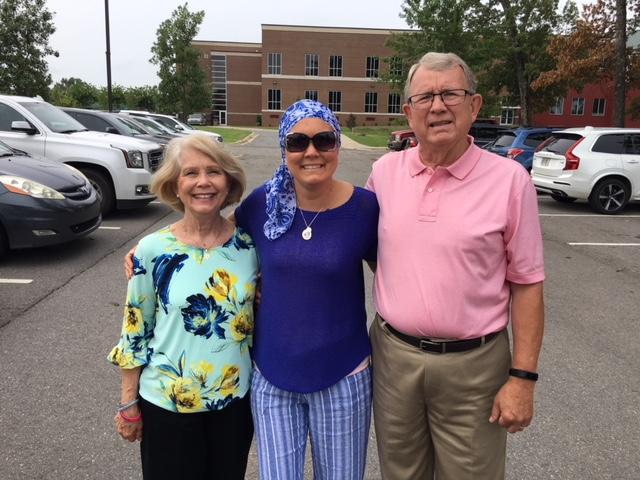unnamed-4Besides hanging out with these ladies, I was blessed by so many others.  At treatment this week…since I did the bald thing, I thought maybe I should look into a wig or something for school.  I hadn’t really considered that my hair would be in shock for awhile and who knows when it will decide to grow back.  So I made a trip at CARTI to their wig and other hair stuff room and I met these sweet teens.    What a blessing that they choose to volunteer up there and try and help those of us who have no idea what’s going on!  Ella Beth and Kate are students at Little Rock Christian Academy and blessed me as we all laughed at what was happening up on my head!  Did I get a wig – no, not yet, but I got a cute scarf!
