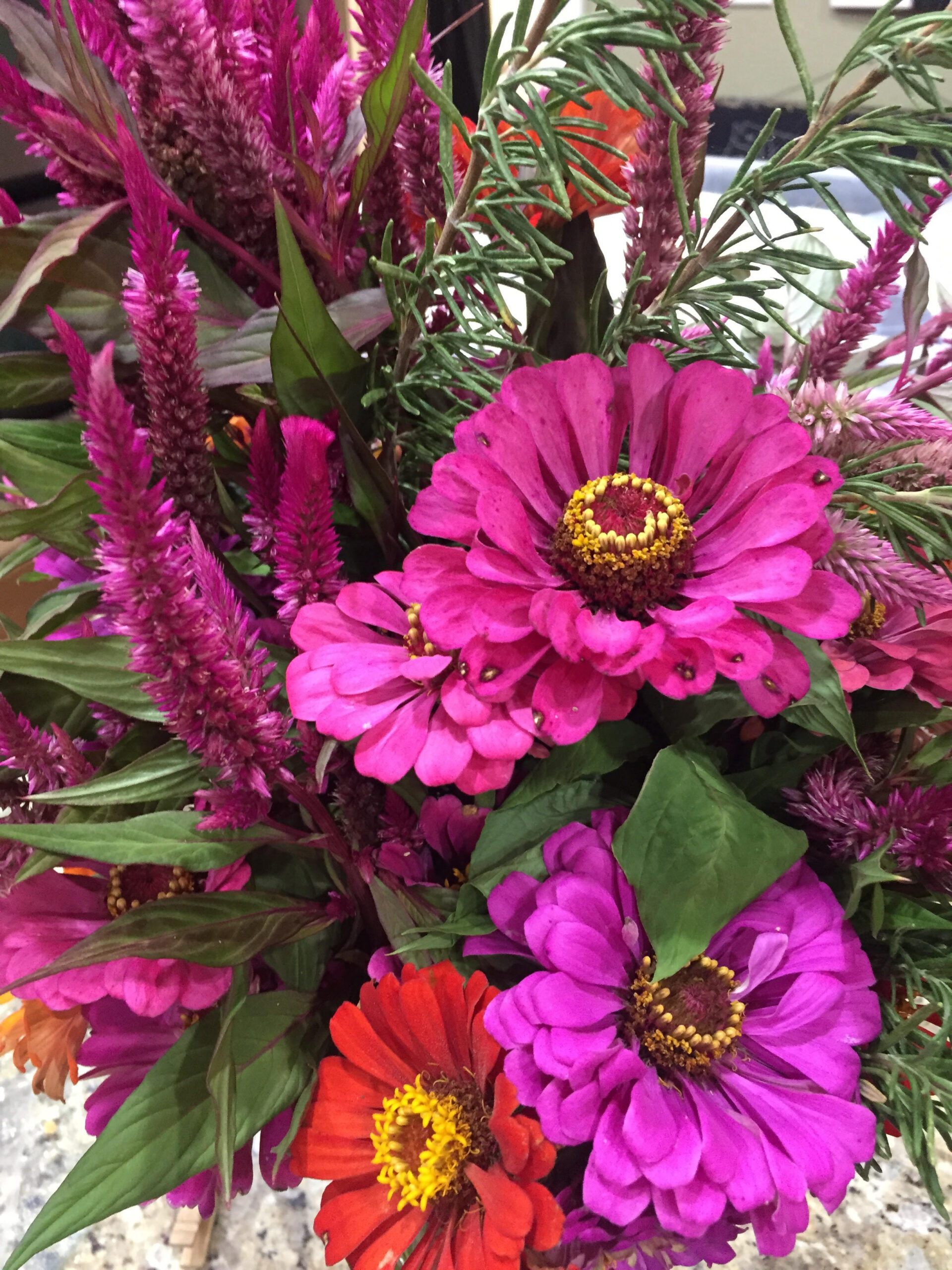These sweet flowers were such a blessing to me.  I was given two bouquets yesterday and I was just blessed.  I am not a flower vase person usually, but through this experience I have cherished each bouquet from every person.  How wonderful God is to give us such variety, color and smells.  The flowers were a daily hug from those that brought them and a reminder to me that God cares for me more than these flowers and look at how gorgeous they are!  I am more valuable than these?  Yes I am!  We are all different like these flowers and we are all loved by the Lord…but He has given each of us different callings to show His glory to the world… if you are the rose I’ll be the sunflower – goodness He is glorified!