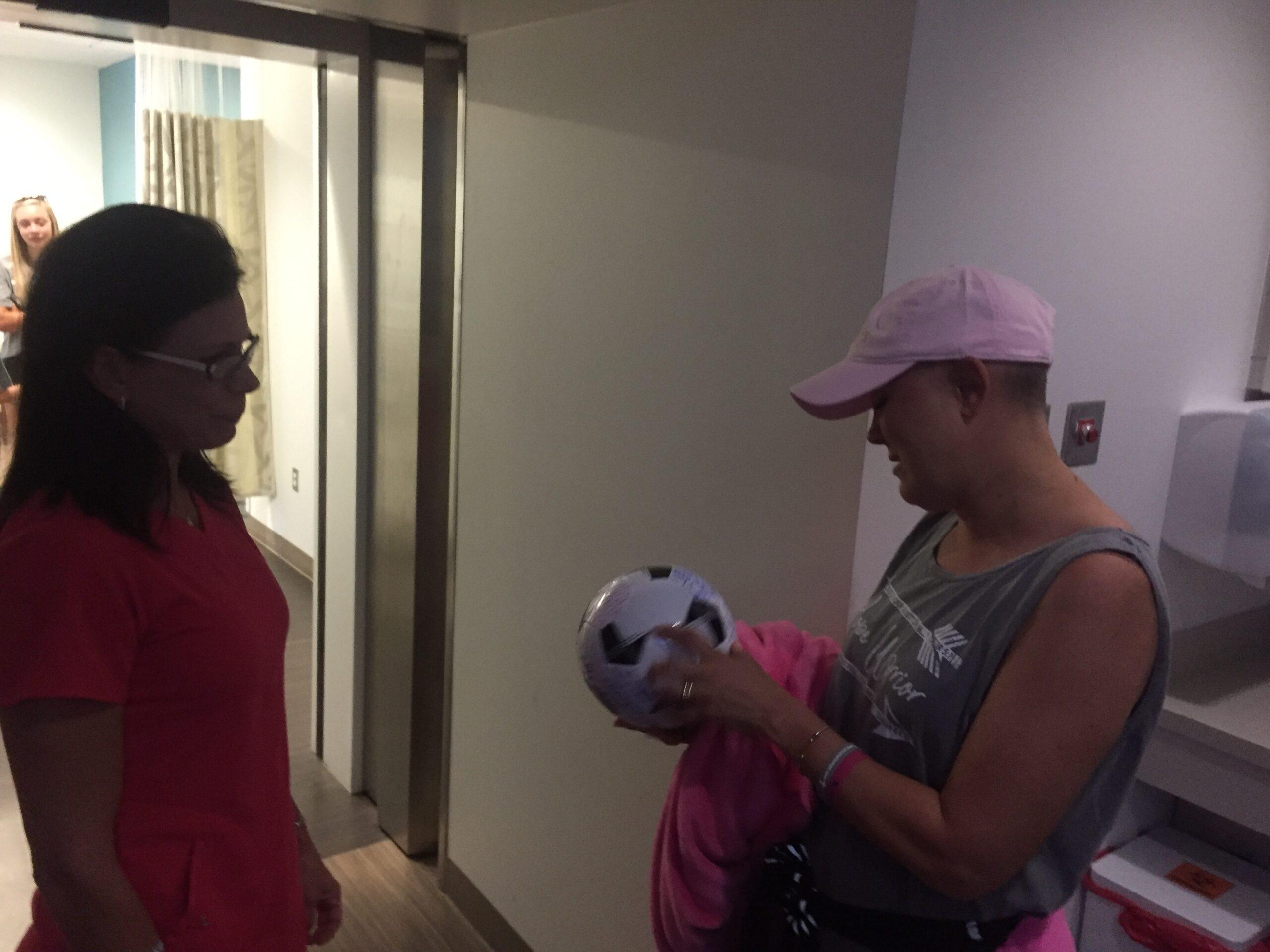 Was blessed by many people the last few days!  Can I just remember to always get photos!  One of my sweet girls Hannah from my club team came up to get bracelets and waited on me to surprise me after treatment Friday.  Best hugs are from my girls.  Her family has been such a blessing and faithful prayer warriors for me.  Very thankful for their joy and love.