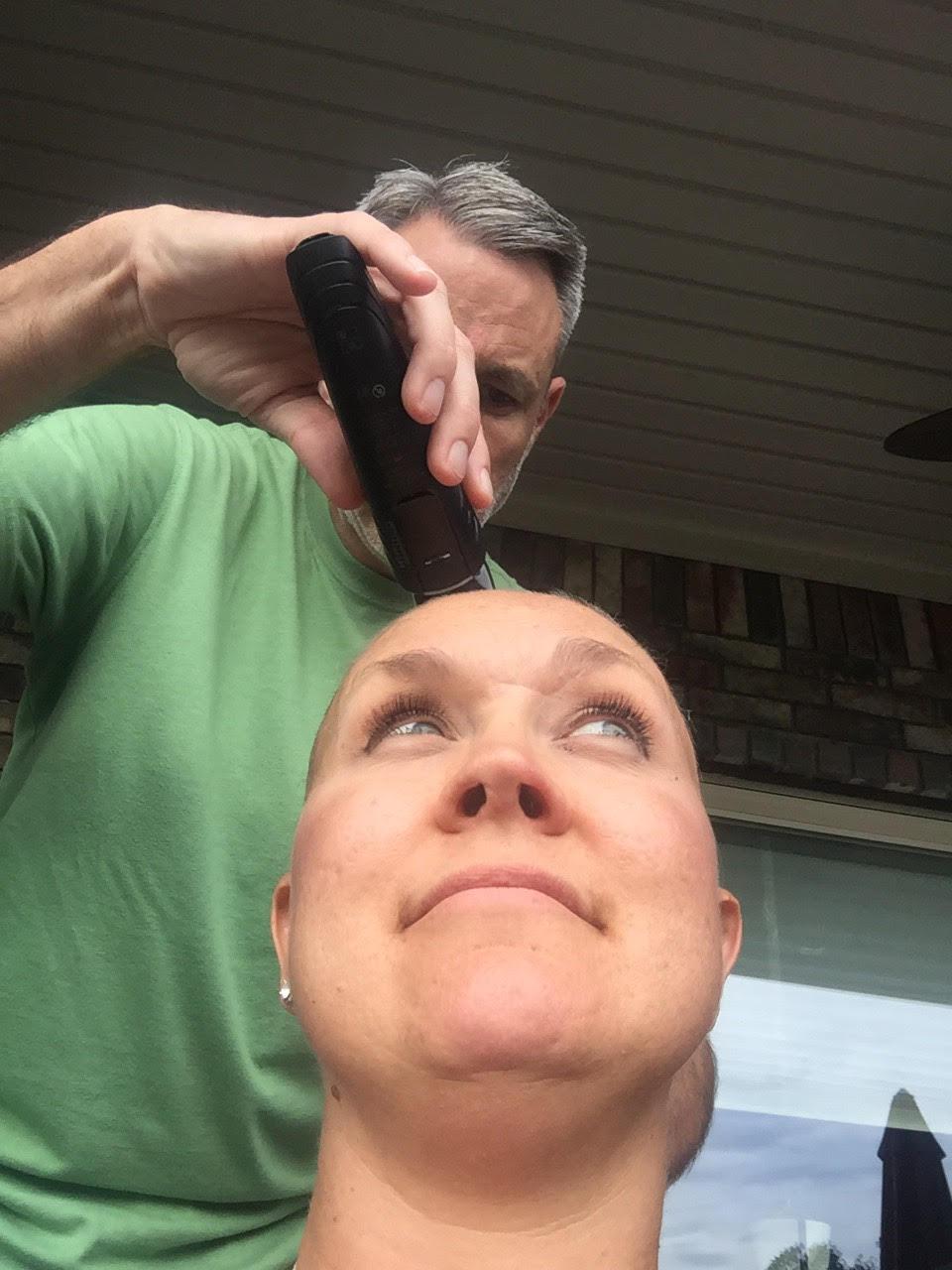 So it was time. I have to say, I struggled a bit with this idea. I like the idea of pulling my hair up and being able to look like a “woman” and that includes doing my hair. But, as Scott finished getting the rest of my hair off tonight, I just told the Lord “this is your plan and you have a purpose and darn it – this is the head you made and you said it was good. So, let’s do this. Be glorified even in this!”