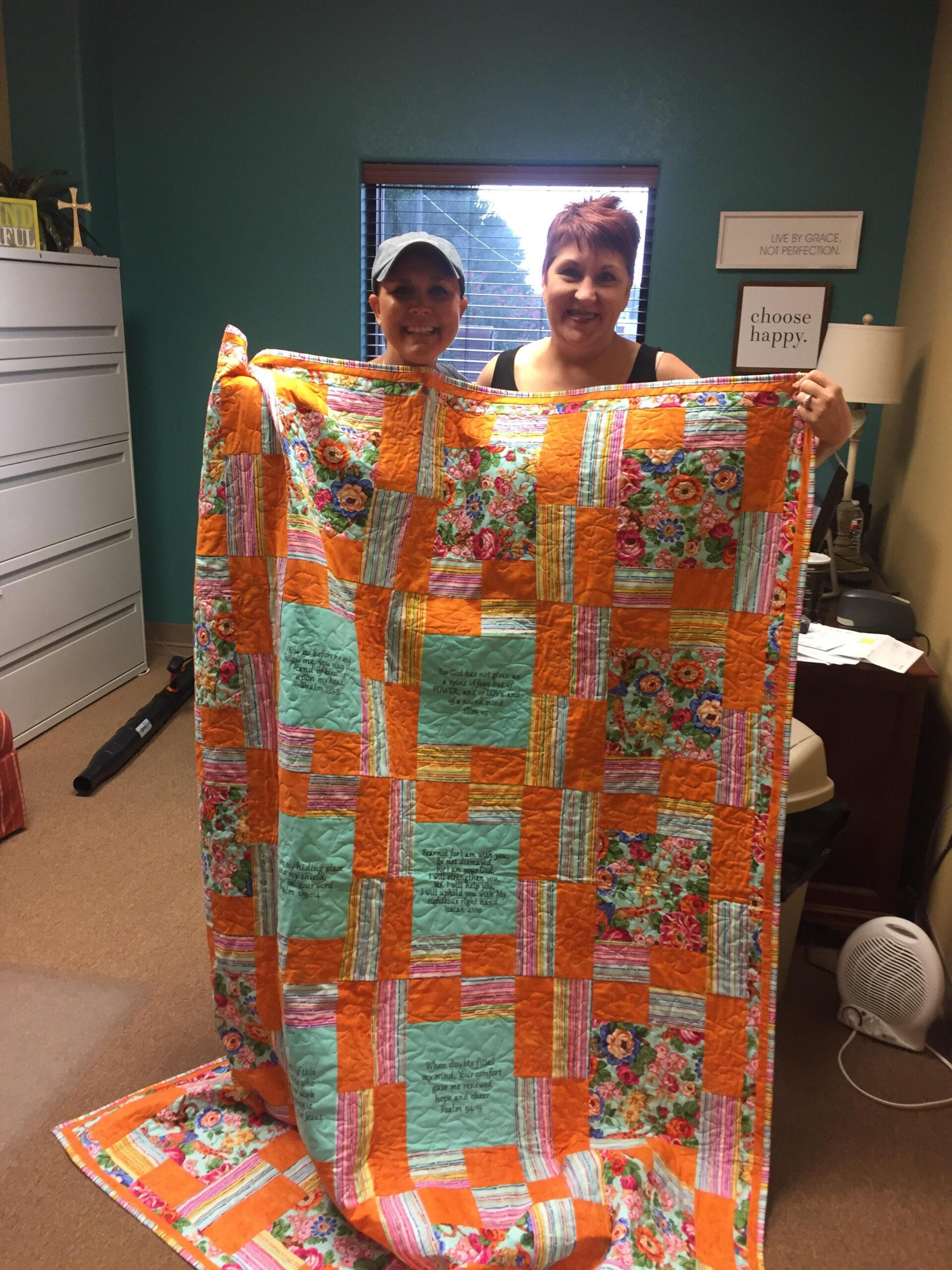 I had a great surprise today. I got a message from a guy who used to ref make games and kept me in line when I thought “the game” was so important – kids were probably 10 Ha! Anyway, Keith was always an excellent ref and I enjoyed his interaction with the players and me. I met up with he and his wife Terri. Here’s how the Lord works: Terri and I have never met, yet she knew one day, God told her to make me a quilt. It is so awesome! She has taken some of the verses off of my blogs and stitched them onto the quilt. Today we got to hug and talk about what all the Lord is doing and I was blessed. God is so great and good!
